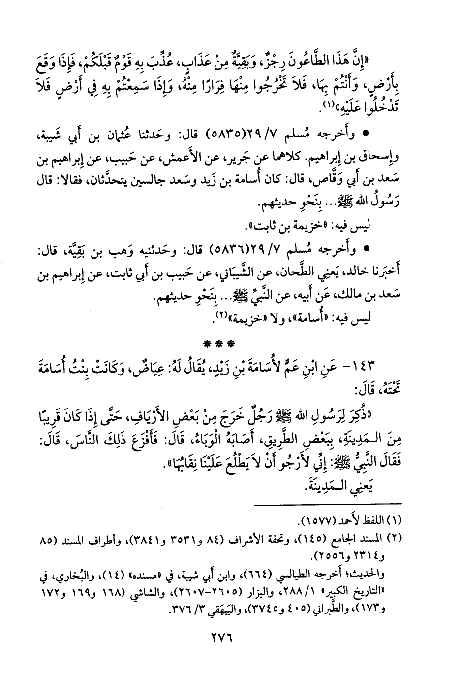١٤٣ - عن ابن عم لأُسامة بن زيد، يقال له: عياض، وكانت بنت أُسامة تحته، قال: