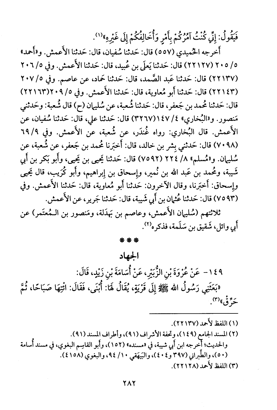 ١٤٩ - عن عروة بن الزبير، عن أُسامة بن زيد، قال: