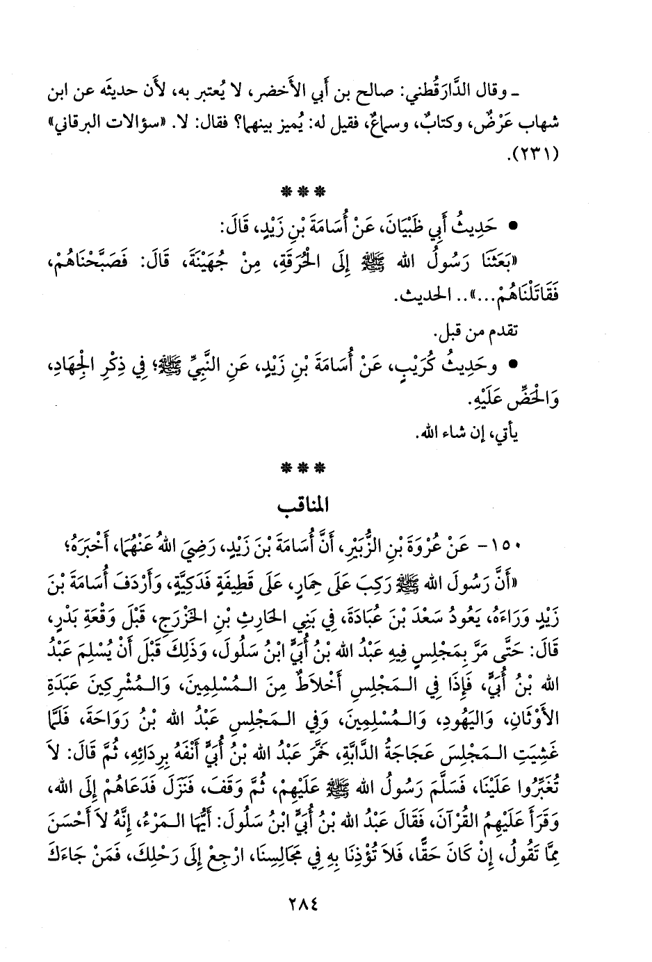 ١٥٠ - عن عروة بن الزبير، أن أُسامة بن زيد، رضي الله عنهما، أخبره؛