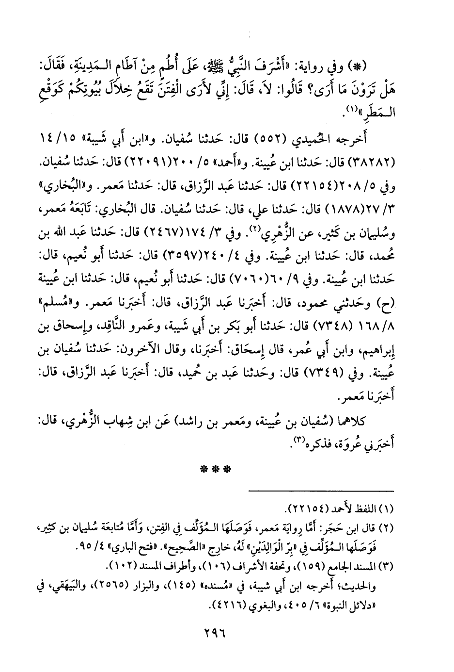 قال البخاري: تابعه معمر، وسليمان بن كثير، عن الزُّهْري (¬١). وفي ٣/ ١٣٣ (٢٤٦٧) قال: حدثنا عبد الله بن محمد، قال: حدثنا ابن عُيينة. وفي ٤/ ١٩٨ (٣٥٩٧) قال: حدثنا أَبو نُعيم، قال: حدثنا ابن عُيينة. وفي ٩/ ٤٨ (٧٠٦٠) قال: حدثنا أَبو نُعيم، قال: حدثنا ابن عُيينة (ح) وحدثني محمود، قال: أخبرنا عبد الرزاق، قال: أخبرنا مَعمَر. و «مسلم» ٨/ ١٦٨ (٧٣٤٨) قال: حدثنا أَبو بكر بن أبي شيبة، وعَمرو الناقد، وإسحاق بن إبراهيم، وابن أبي عمر، قال إسحاق: أخبرنا، وقال الآخرون: حدثنا سفيان بن عُيينة. وفي (٧٣٤٩) قال: وحدثنا عَبد بن حُميد، قال: أخبرنا عبد الرزاق، قال: أخبرنا مَعمَر.