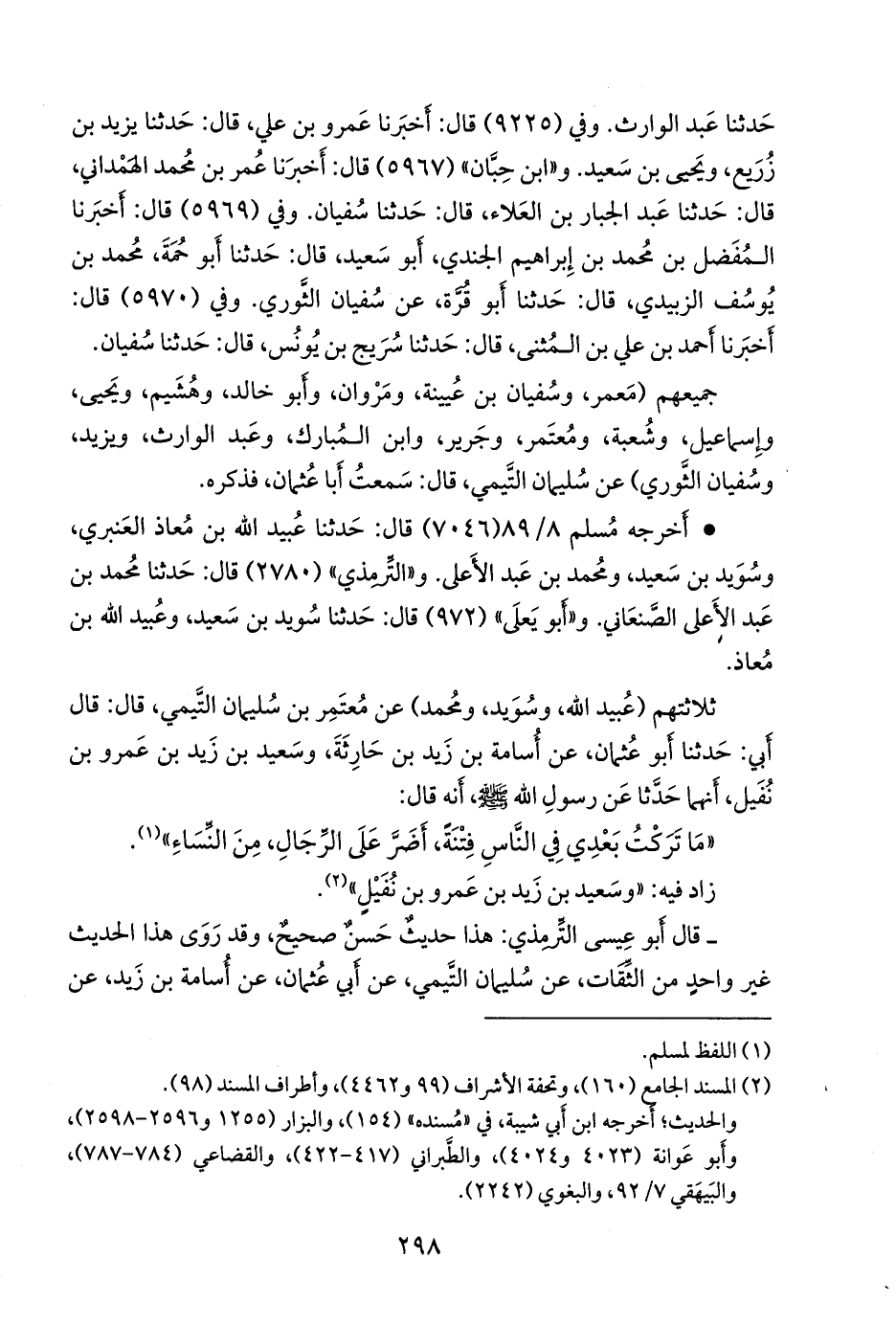 ثلاثتهم (عُبيد الله، وسويد، ومحمد) عن مُعتَمِر بن سليمان التيمي، قال: قال أبي: حدثنا أَبو عثمان، عن أُسامة بن زيد بن حارثة، وسعيد بن زيد بن عَمرو بن نفيل، أنهما حدثا عن رسول الله صَلى الله عَليه وسَلم أنه قال: