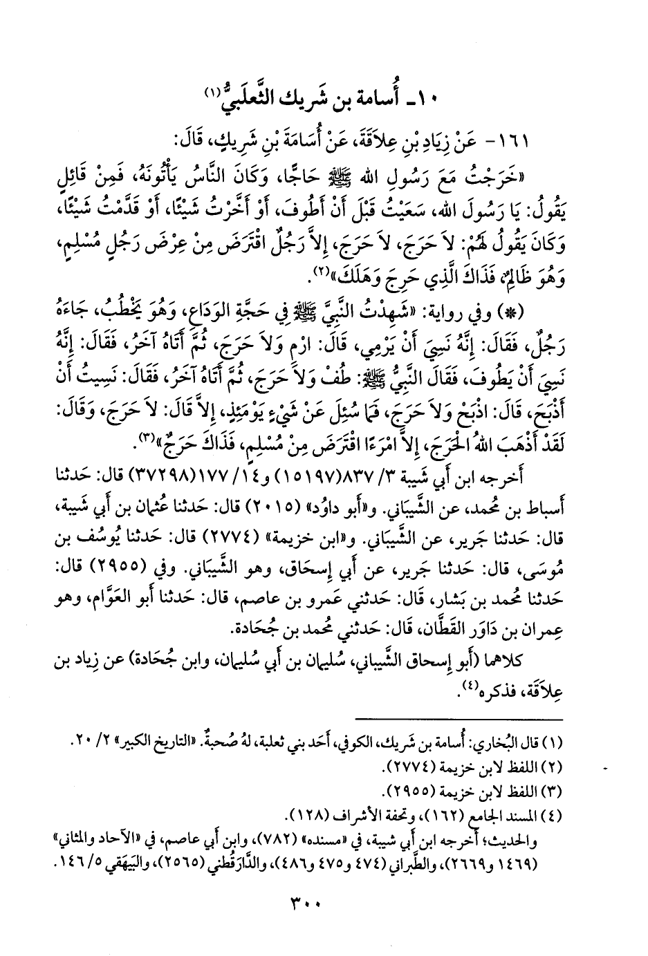 (¬١) قال البخاري: أُسامة بن شريك، الكوفي، أحد بني ثعلبة، له صحبة. «التاريخ الكبير» ٢/ ٢٠.