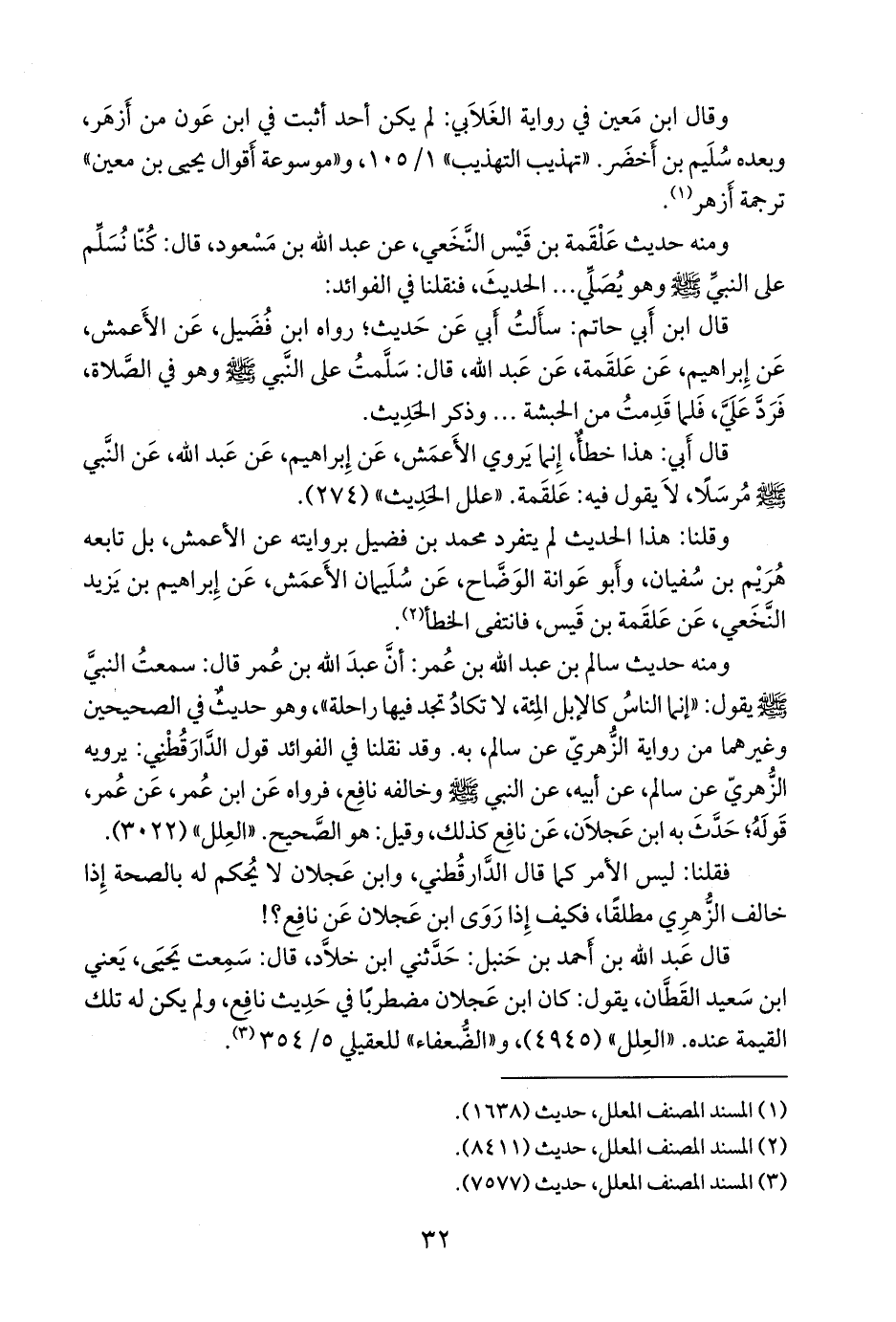 قال ابن أَبي حاتم: سأَلتُ أَبي عَن حَديث؛ رواه ابن فُضَيل، عَن الأَعمش، عَن إِبراهيم، عَن عَلقَمة، عَن عَبد الله، قال: سَلَّمتُ على النَّبي - صلى الله عليه وسلم - وهو في الصَّلاة، فَرَدَّ عَلَيَّ، فَلما قَدِمتُ من الحبشة ... وذكر الحَدِيث.