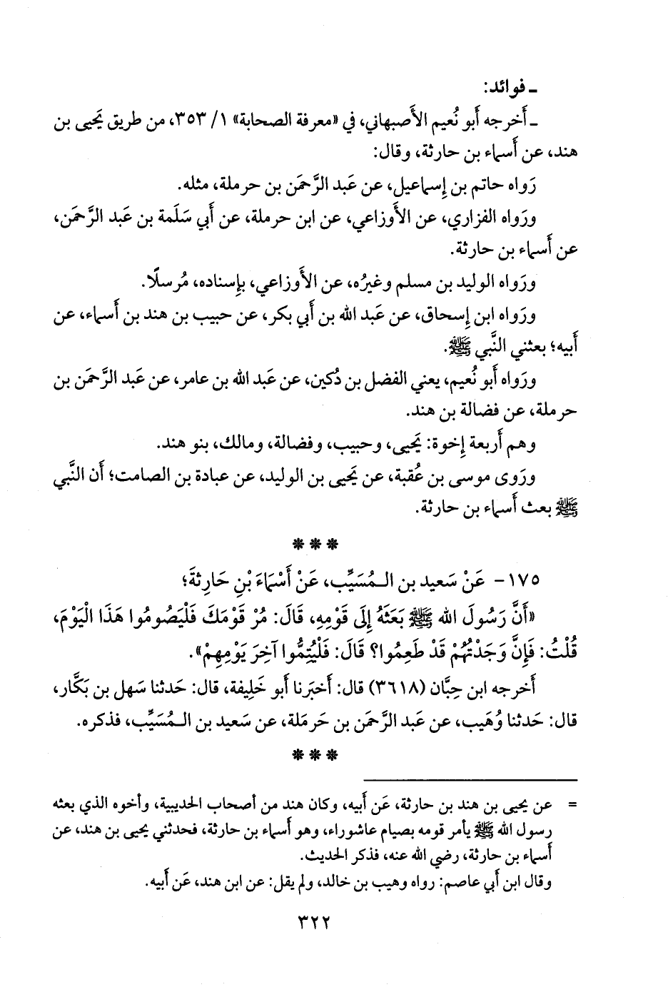 ١٧٥ - عن سعيد بن المُسَيب، عن أسماء بن حارثة؛