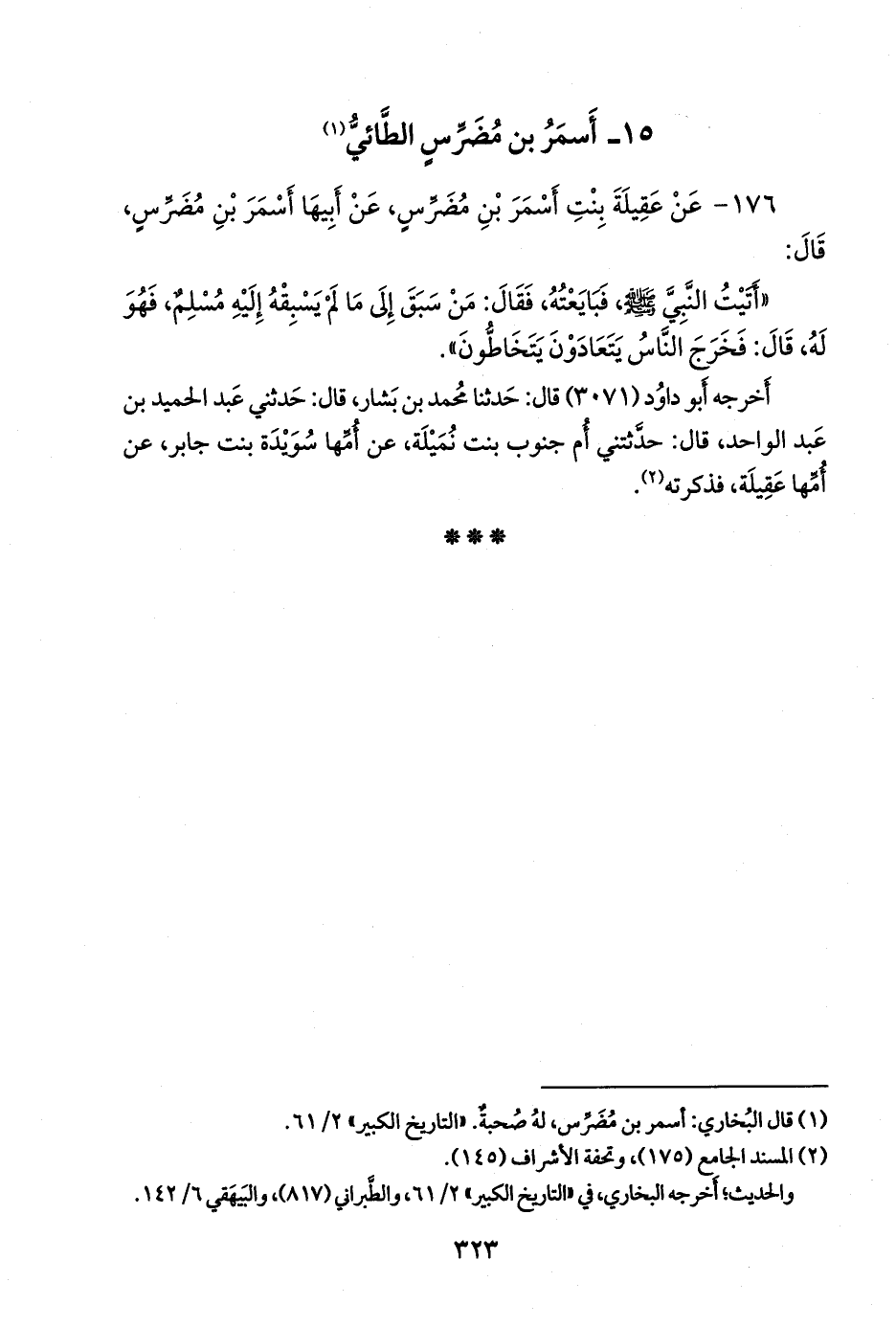١٧٦ - عن عقيلة بنت أسمر بن مُضَرِّس، عن أبيها أسمر بن مُضَرِّس، قال: