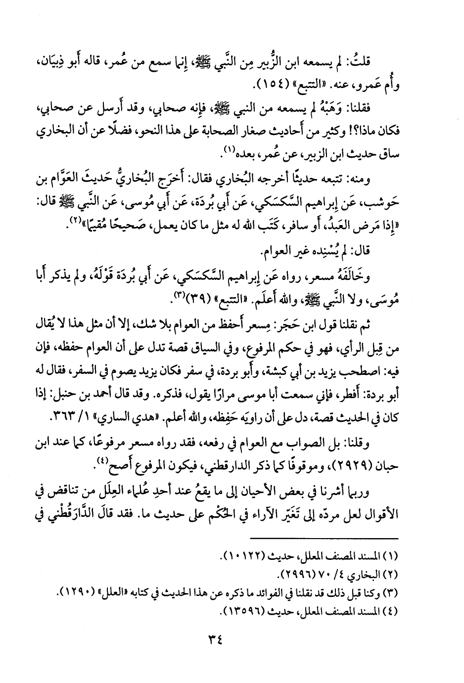 وقلنا: بل الصواب مع العوام في رفعه، فقد رواه مسعر مرفوعًا، كما عند ابن حبان (٢٩٢٩)، وموقوفًا كما ذكر الدارقطني، فيكون المرفوع أَصح (٤).