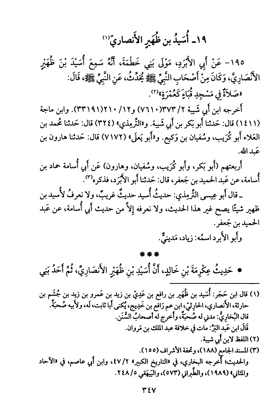 (¬١) قال البخاري: أسيد بن ظهير الحارثي، الأَنصاري، مدني، له صحبة. «التاريخ الكبير» ٢/ ٤٧.