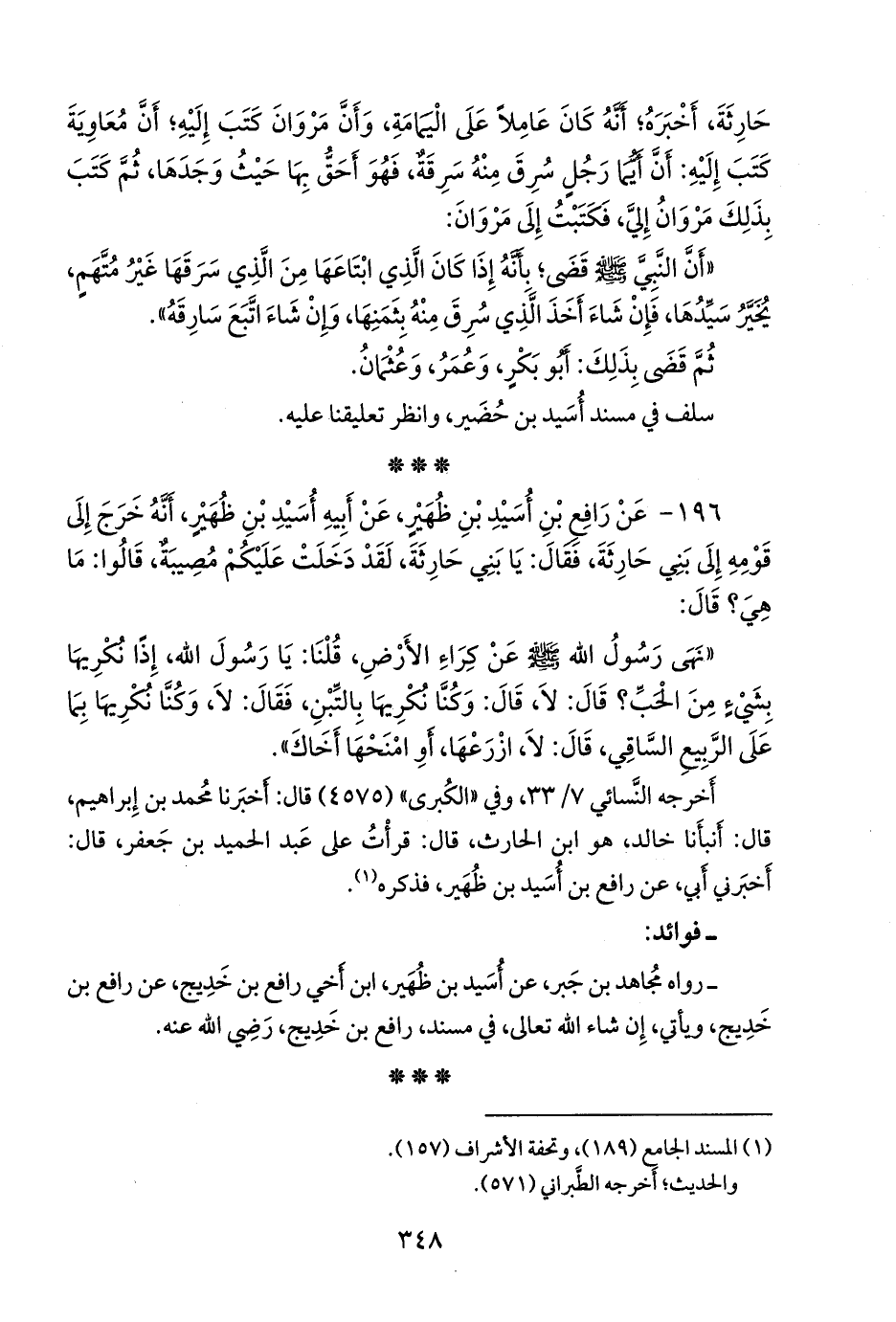 - قلنا: رواه مجاهد بن جَبر، عن أُسَيد بن ظُهير، ابن أَخي رافع بن خَدِيج، عن رافع بن خَدِيج، ويأتي، إِن شاء الله تعالى، في مسند، رافع بن خَدِيج، رضي الله عنه، برقم ().