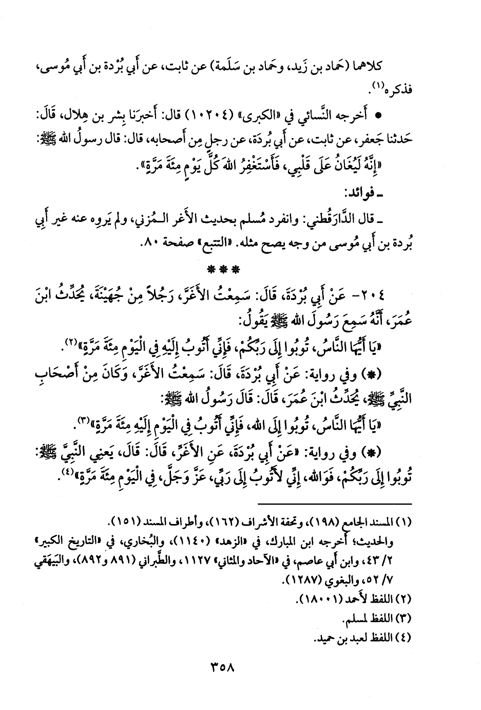 ٢٠٤ - عن أبي بردة، قال: سمعت الأغر، رجلا من جهينة، يحدث ابن عمر، أنه سمع رسول الله صَلى الله عَليه وسَلم يقول: