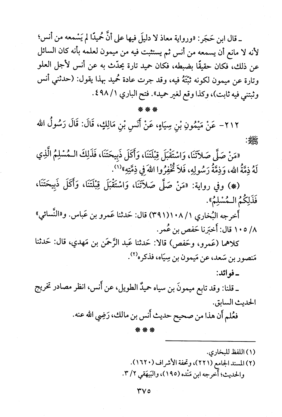 - وفي رواية: «من صلى صلاتنا، واستقبل قبلتنا، وأكل ذبيحتنا، فذلكم المسلم».