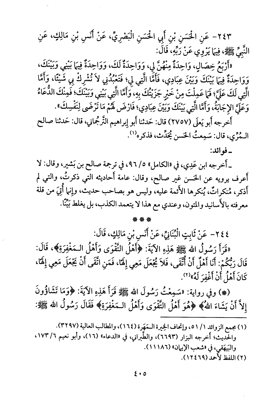 ٢٤٣ - عن الحسن بن أبي الحسن البصري، عن أَنس بن مالك، عن النبي صَلى الله عَليه وسَلم فيما يروي عن ربه، قال: