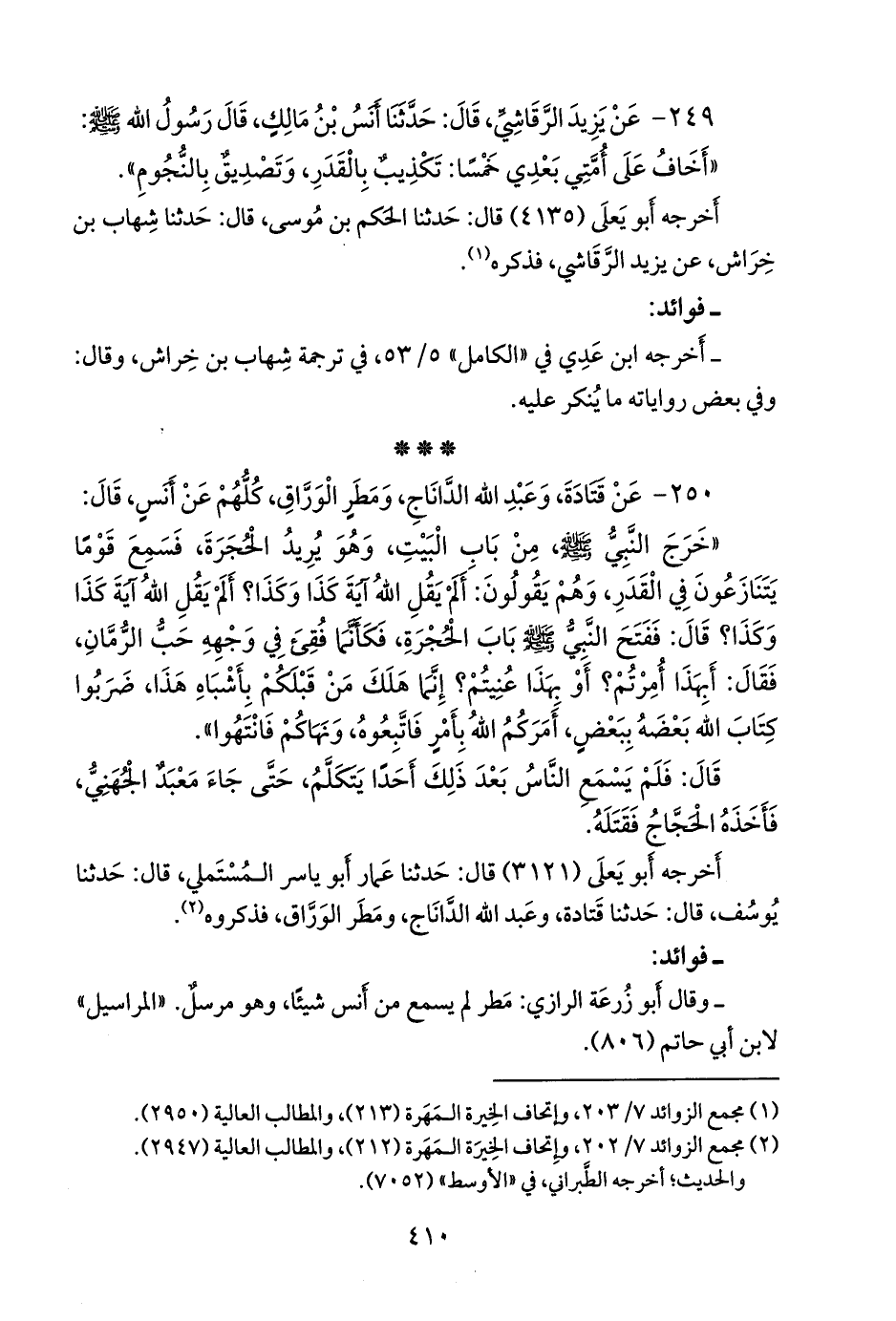 (¬١) مَجمَع الزوائد ٧/ ٢٠٢، وإتحاف الخِيرَة المَهَرة (٢١٢)، والمطالب العالية (٢٩٤٧).