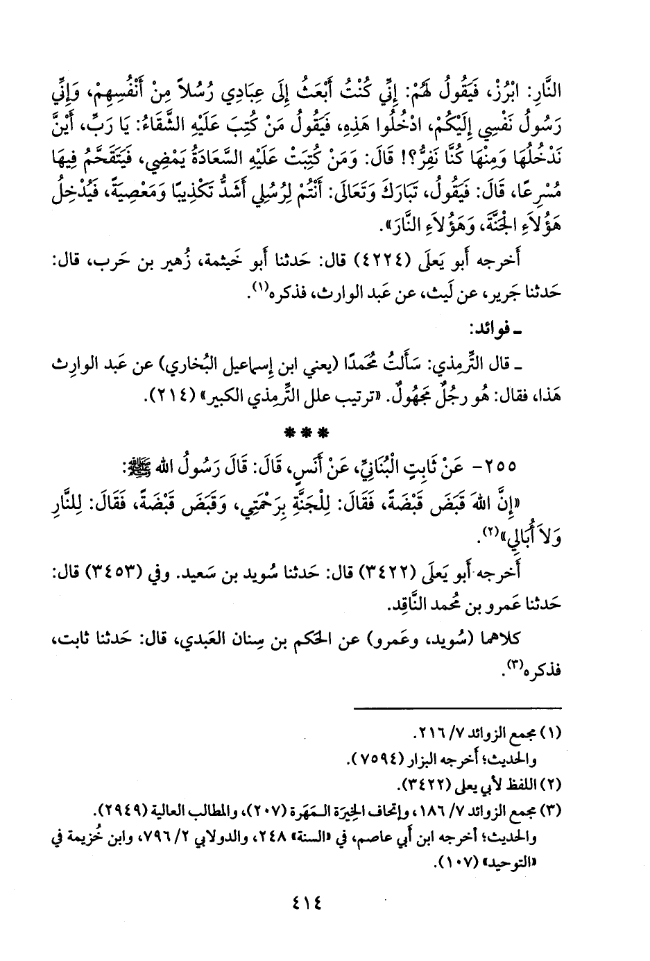 (¬٢) مَجمَع الزوائد ٧/ ١٨٦، وإتحاف الخِيرَة المَهَرة (٢٠٧)، والمطالب العالية (٢٩٤٩).