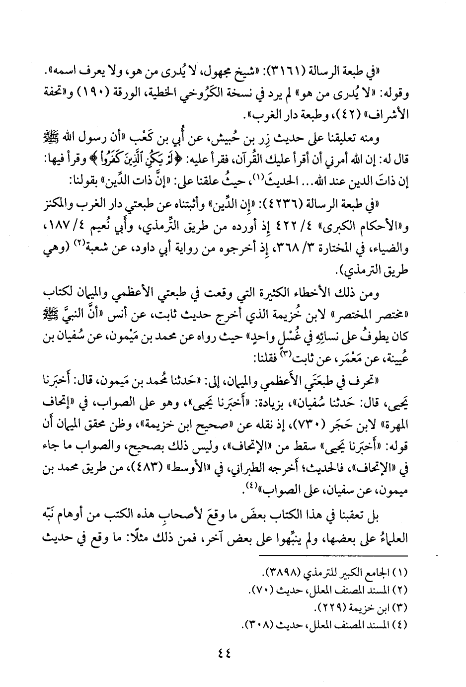 بل تعقبنا في هذا الكتاب بعضَ ما وقعَ لأصحابِ هذه الكتب من أوهام نَبّه العلماءُ على بعضها، ولم ينبِّهوا على بعض آخر، فمن ذلك مثلًا: ما وقع في حديث