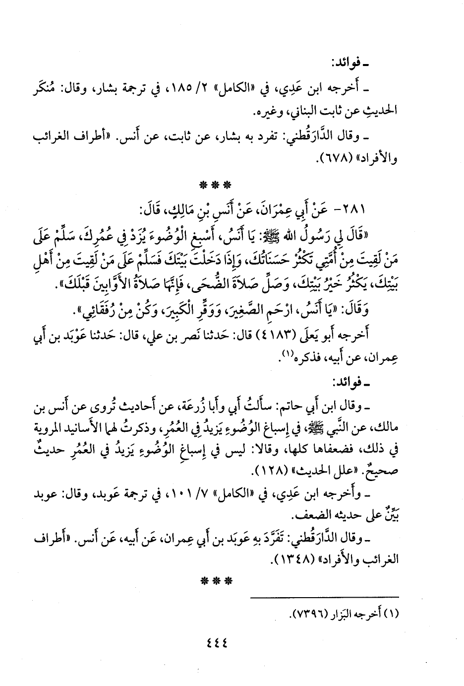 - وقال الدارقُطني: تفرد به بشار، عن ثابت، عن أَنس. «أطراف الغرائب والأفراد» (٦٧٨).
