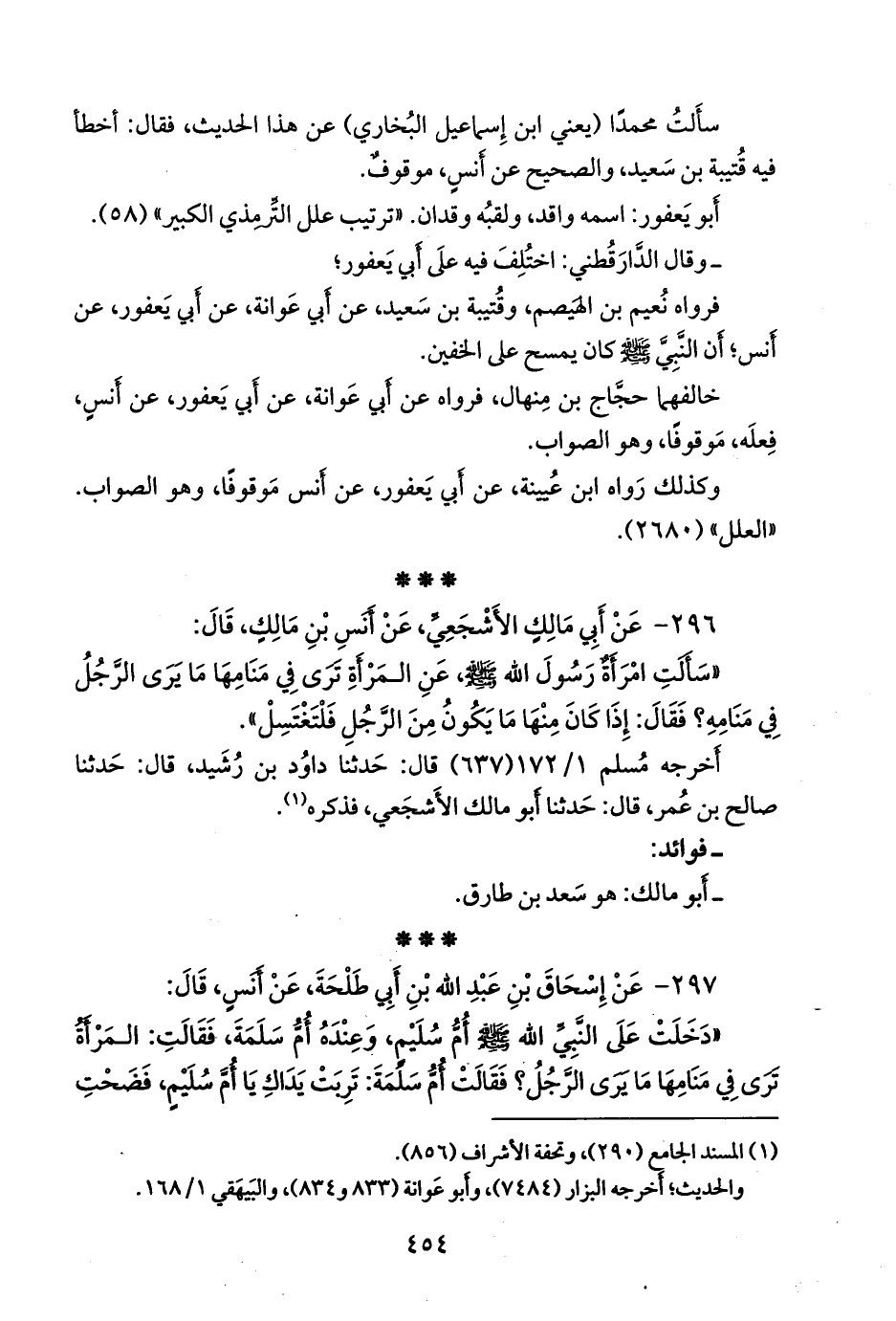 ٢٩٦ - عن أبي مالك الأشجعي، عن أَنس بن مالك، قال:
