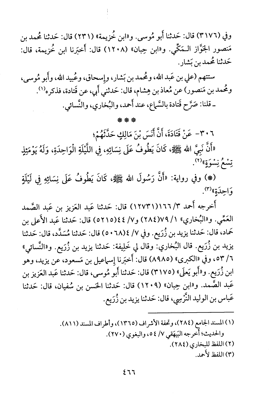 - قال البخاري ١/ ٦٢ (٢٦٨): وقال سعيد، عن قتادة، أن أنسا حدثهم؛ «تسع نسوة».