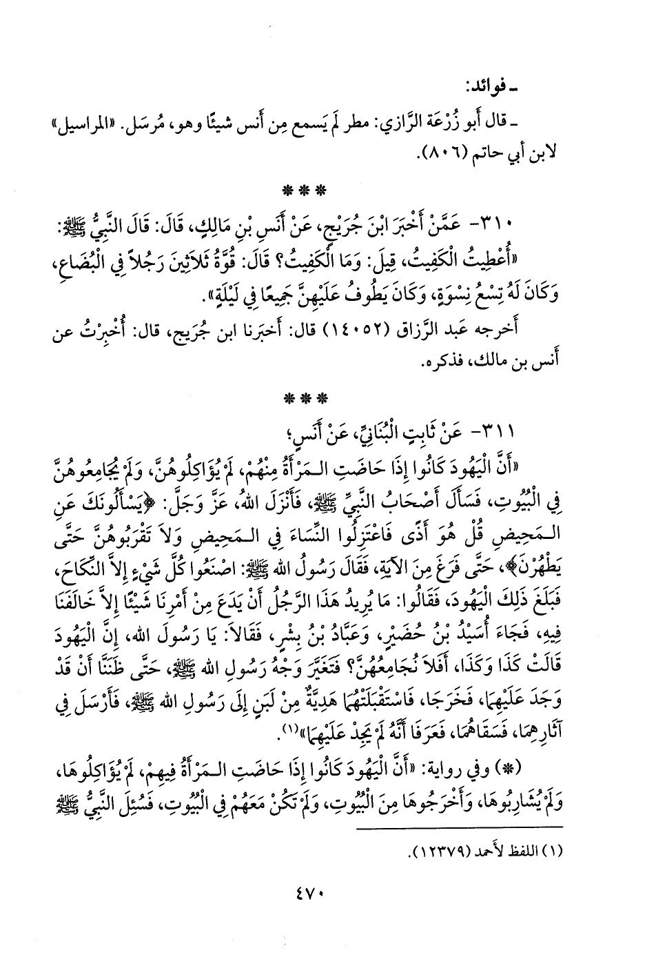- وفي رواية: «أن اليهود كانوا إذا حاضت المرأة فيهم، لم يؤاكلوها، ولم يشاربوها، وأخرجوها من البيوت، ولم تكن معهم في البيوت، فسئل النبي صَلى الله عَليه وسَلم