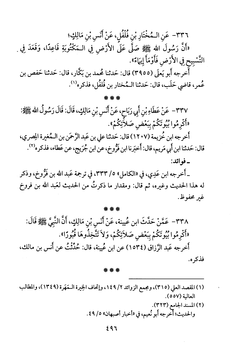 ٣٣٦ - عن المختار بن فلفل، عن أَنس بن مالك؛