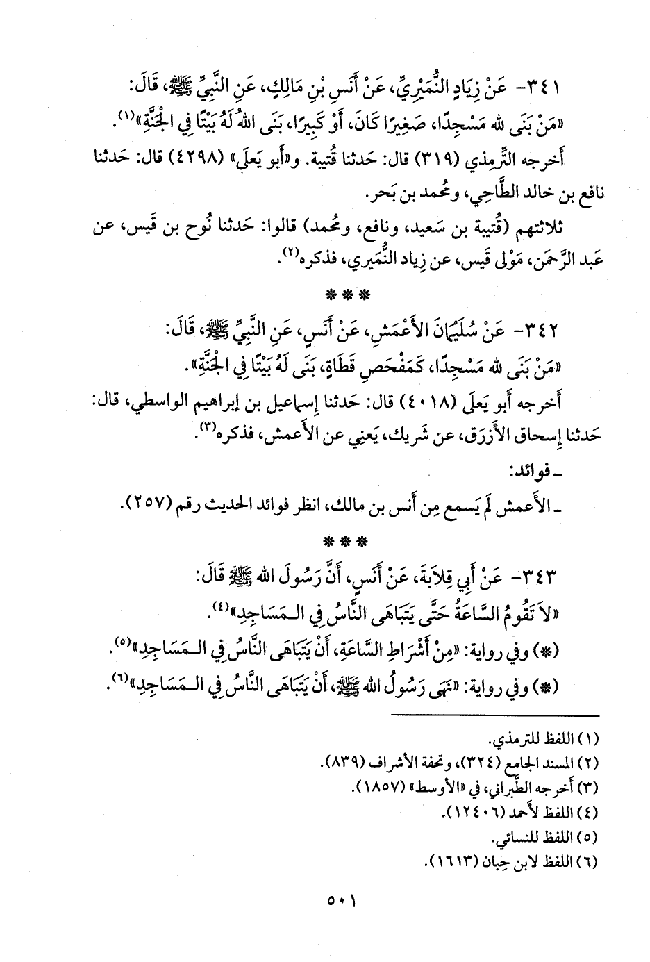 ٣٤١ - عن زياد النميري، عن أَنس بن مالك، عن النبي صَلى الله عَليه وسَلم قال: