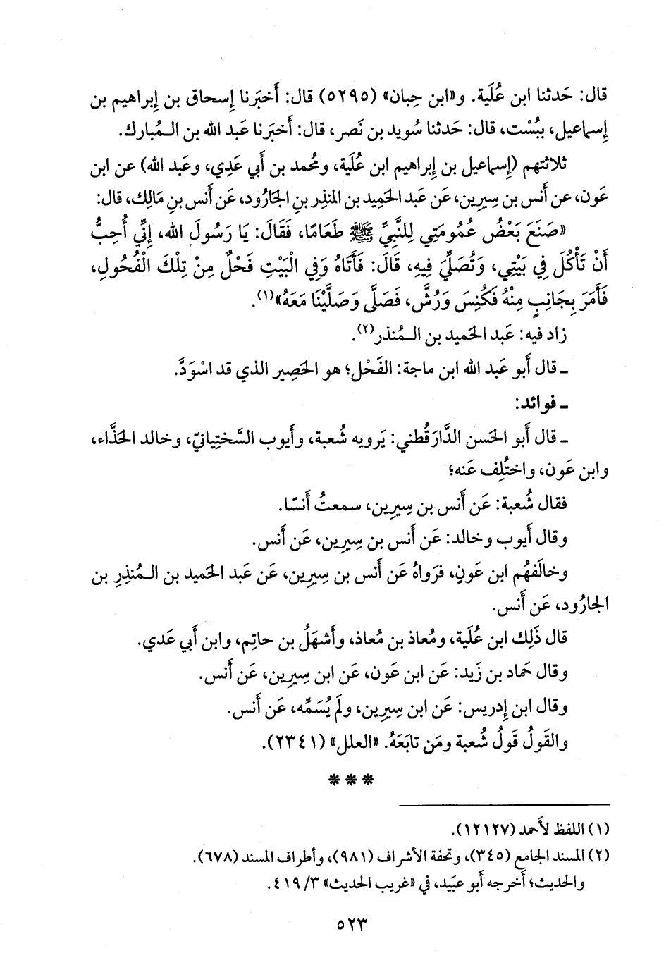 كلاهما (محمد بن سَلام، وسَوَّار بن عبد الله) عن عبد الوَهَّاب الثقفي، عن خالد الحَذاء، عن أَنس بن سِيرين، فذكره (¬٢).