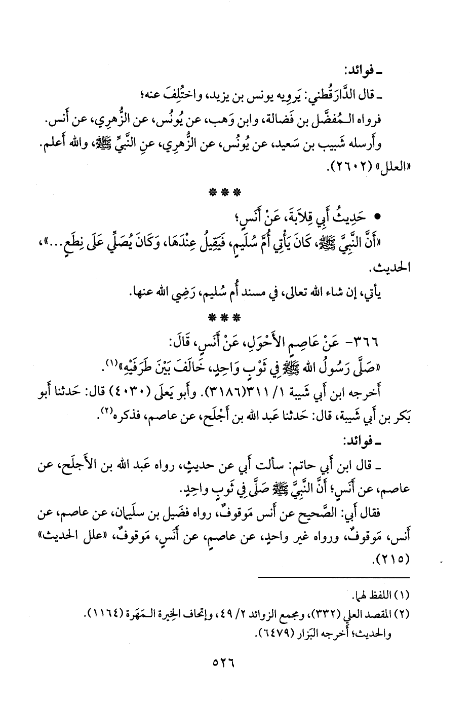 - قلنا: إِسناده ضعيفٌ؛ قال ابن أبي حاتم: سألت أبي عن حديث، رواه عبد الله بن الأجلح، عن عاصم، عن أَنس؛ أن النبي صَلى الله عَليه وسَلم صلى في ثوب واحد.