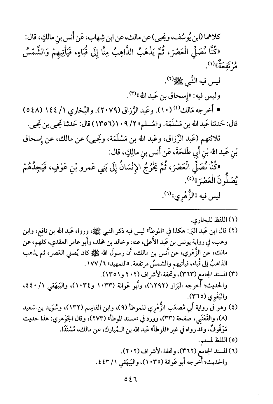 - وقال أَبو الحسن الدَّارَقطني: أَخرجا جميعا، يعني البخاري ومسلما، حديث مالك، عن الزهري، عن أَنس؛ كنا نصلي العصر ثم يذهب الذاهب منا إِلى قباء.