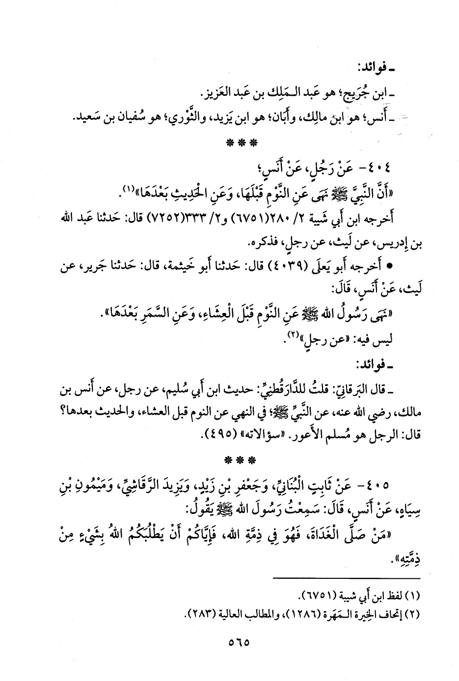 - وقال البَرقاني: قلتُ للدارقُطني: حديث ابن أَبي سُليم، عن رجل، عن أَنس بن مالك، رضي الله عنه، عن النبي صَلى الله عَليه وسَلم؛ في النهي عن النوم قبل العشاء، والحديث بعدها؟ قال: الرجل هو مسلم الأَعور. «سؤالاته» (٤٩٥).