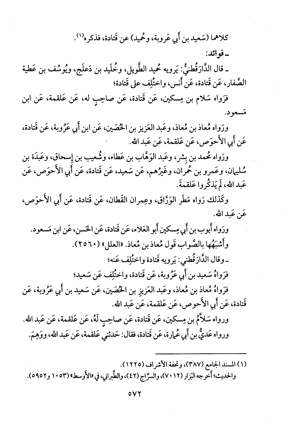 ورواه محمد بن بشر، وعبد الوَهَّاب بن عطاء، وشعيب بن إسحاق، وعَبدة بن سليمان، وعَمرو بن حمران، وغيرهم، عن سعيد، عن قتادة، عن أبي الأحوص، عن عبد الله، لم يذكروا علقمة.