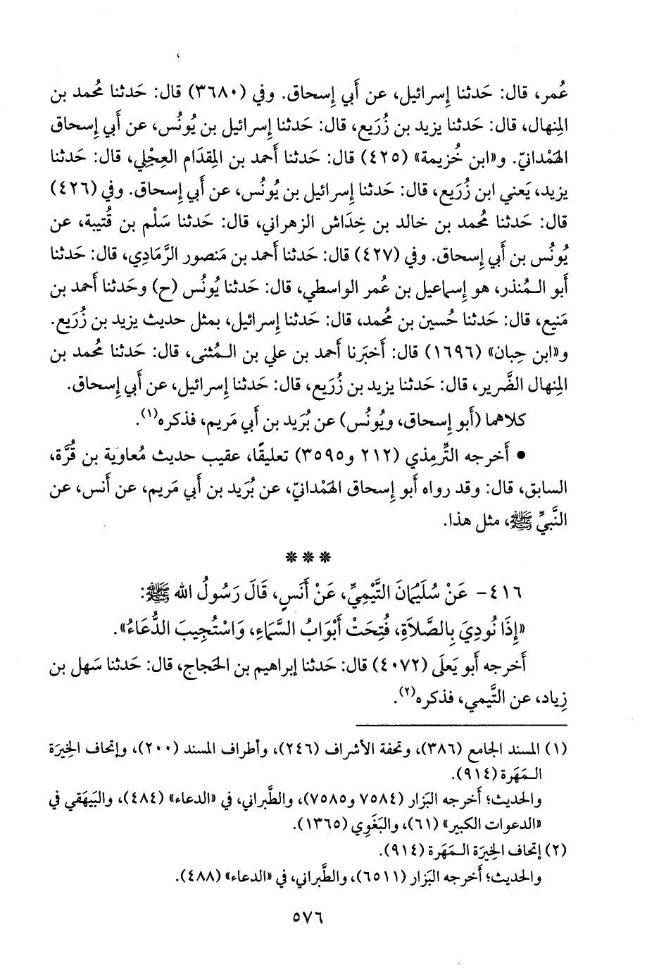 وفي (٣٦٨٠) قال: حدثنا محمد بن المنهال، قال: حدثنا يزيد بن زُريع، قال: حدثنا إسرائيل بن يونس، عن أبي إسحاق الهمداني. و «ابن خزيمة» (٤٢٥) قال: حدثنا أحمد بن المقدام العجلي، قال: حدثنا يزيد، يعني ابن زُريع، قال: حدثنا إسرائيل بن يونس، عن أبي إسحاق. وفي (٤٢٦) قال: حدثنا محمد بن خالد بن خِداش الزهراني، قال: حدثنا سَلْم بن قُتيبة، عن يونس بن أبي إسحاق. وفي (٤٢٧) قال: حدثنا أحمد بن منصور الرمادي، قال: حدثنا أَبو المنذر، هو إسماعيل بن عمر الواسطي، قال: حدثنا يونس (ح) وحدثنا أحمد بن مَنيع، قال: حدثنا حسين بن محمد، قال: حدثنا إسرائيل، بمثل حديث يزيد بن زُريع. و «ابن حِبَّان» (١٦٩٦) قال: أخبرنا أحمد بن علي بن المثنى، قال: حدثنا محمد بن المنهال الضرير، قال: حدثنا يزيد بن زُريع، قال: حدثنا إسرائيل، عن أبي إسحاق.