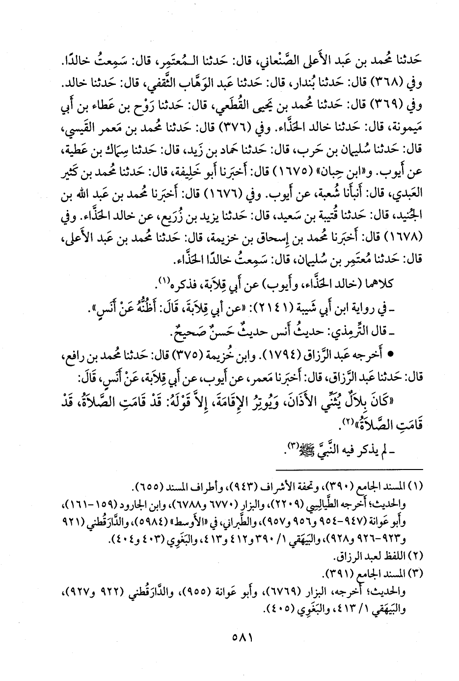 - أخرجه عبد الرزاق (١٧٩٤). وابن خزيمة (٣٧٥) قال: حدثنا محمد بن رافع، قال: حدثنا عبد الرزاق، قال: أخبرنا مَعمَر، عن أيوب، عن أبي قلابة، عن أَنس، قال: