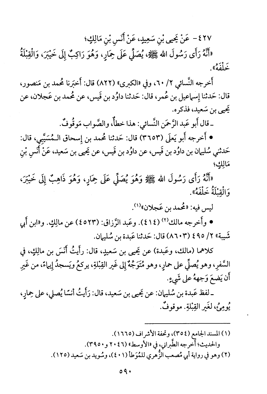 - وأَخرجه مالك (¬٢) (٤١٤). وعبد الرزاق: (٤٥٢٣) عن مالك، عن يحيى بن سعيد، قال: رأَيتُ أَنس بن مالك، في السفر، وهو يُصلي على حمار، وهو مُتَوجِّه إِلى غير القِبلة، يركع ويَسجد إِيماءً، من غير أَن يضع وجهه على شيء. موقوف.