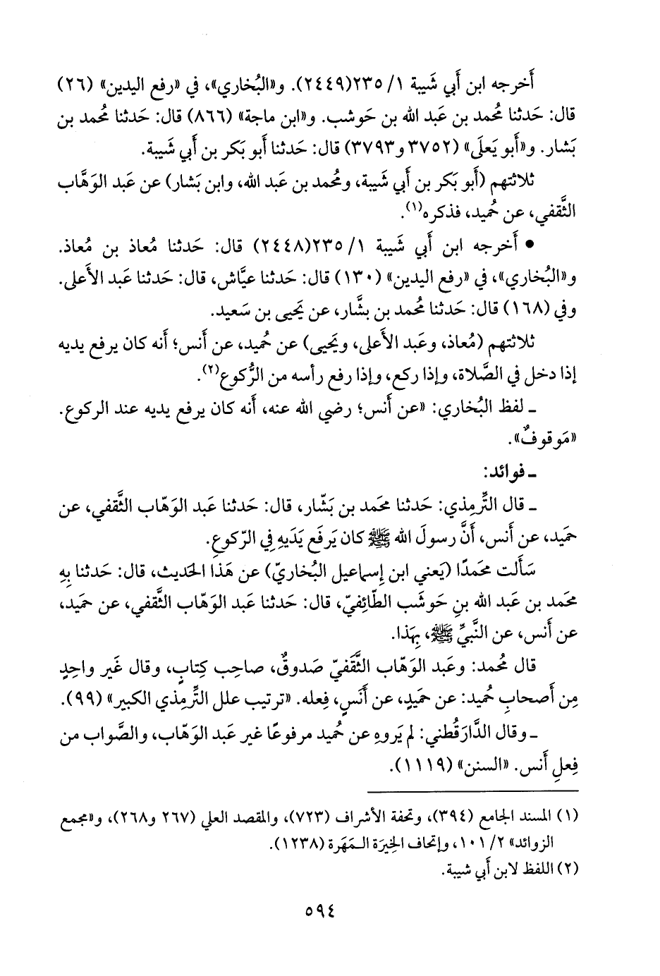 - قال التِّرمِذي: حدثنا محمد بن بشار، قال: حدثنا عبد الوَهَّاب الثقفي، عن حُميد، عن أَنس، أَن رسول الله صَلى الله عَليه وسَلم كان يرفع يديه في الركوع.