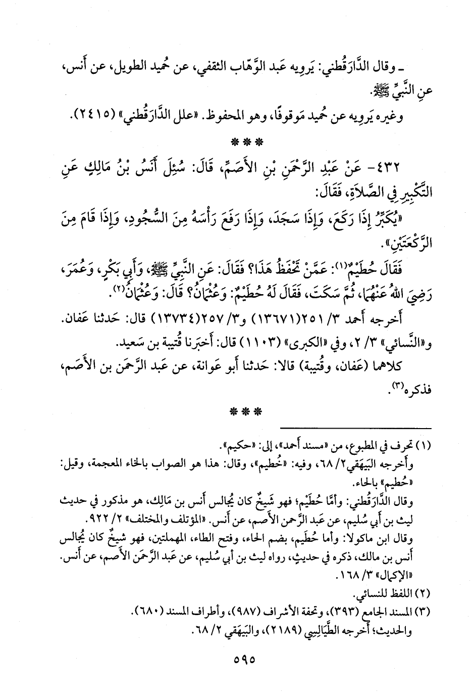 ٤٣٢ - عن عبد الرَّحمَن بن الأصم، قال: سئل أَنس بن مالك عن التكبير في الصلاة، فقال: