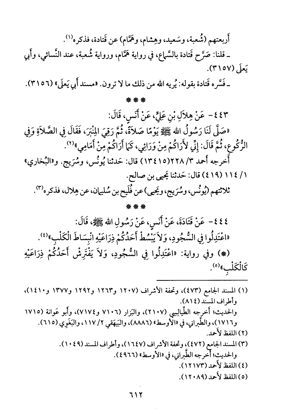 ٤٤٤ - عن قتادة، عن أَنس، عن رسول الله صَلى الله عَليه وسَلم قال: