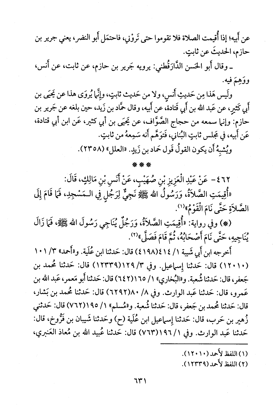 أخرجه ابن أبي شيبة (٤١٩٨) قال: حدثنا ابن عُلَية. و «أحمد» ٣/ ١٠١ (١٢٠١٠) قال: حدثنا إسماعيل. وفي ٣/ ١٢٩ (١٢٣٣٩) قال: حدثنا محمد بن جعفر، قال: حدثنا شعبة. و «البخاري» ١/ ١٣٠ (٦٤٢) قال: حدثنا أَبو مَعمَر عبد الله بن عَمرو، قال: حدثنا عبد الوارث. وفي ٨/ ٦٥ (٦٢٩٢) قال: حدثنا محمد بن بشار، قال: حدثنا محمد بن جعفر، قال: حدثنا شعبة. و «مسلم» ١/ ١٩٥ (٧٦٢) قال: حدثني زهير بن حرب، قال: حدثنا إسماعيل ابن عُلَية (ح) وحدثنا شَيبان بن فَرُّوخ، قال: حدثنا عبد الوارث. وفي ١/ ١٩٦ (٧٦٣) قال: حدثنا عُبيد الله بن معاذ العنبري،