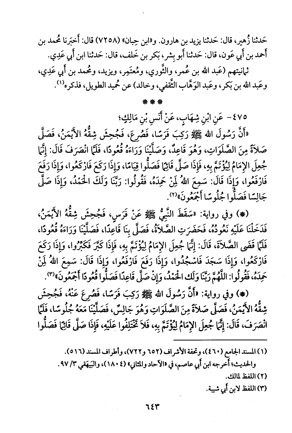 ٤٧٥ - عن ابن شهاب، عن أَنس بن مالك؛