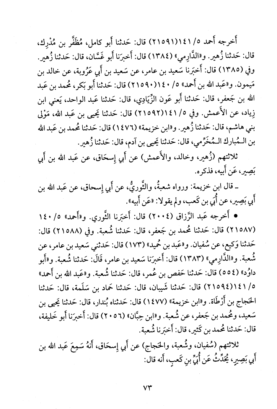 ـ قال ابن خزيمة: ورواه شعبة، والثوري، عن أبي إسحاق، عن عبد الله بن أبي بصير، عن أُبي بن كعب، ولم يقولا: «عن أبيه»