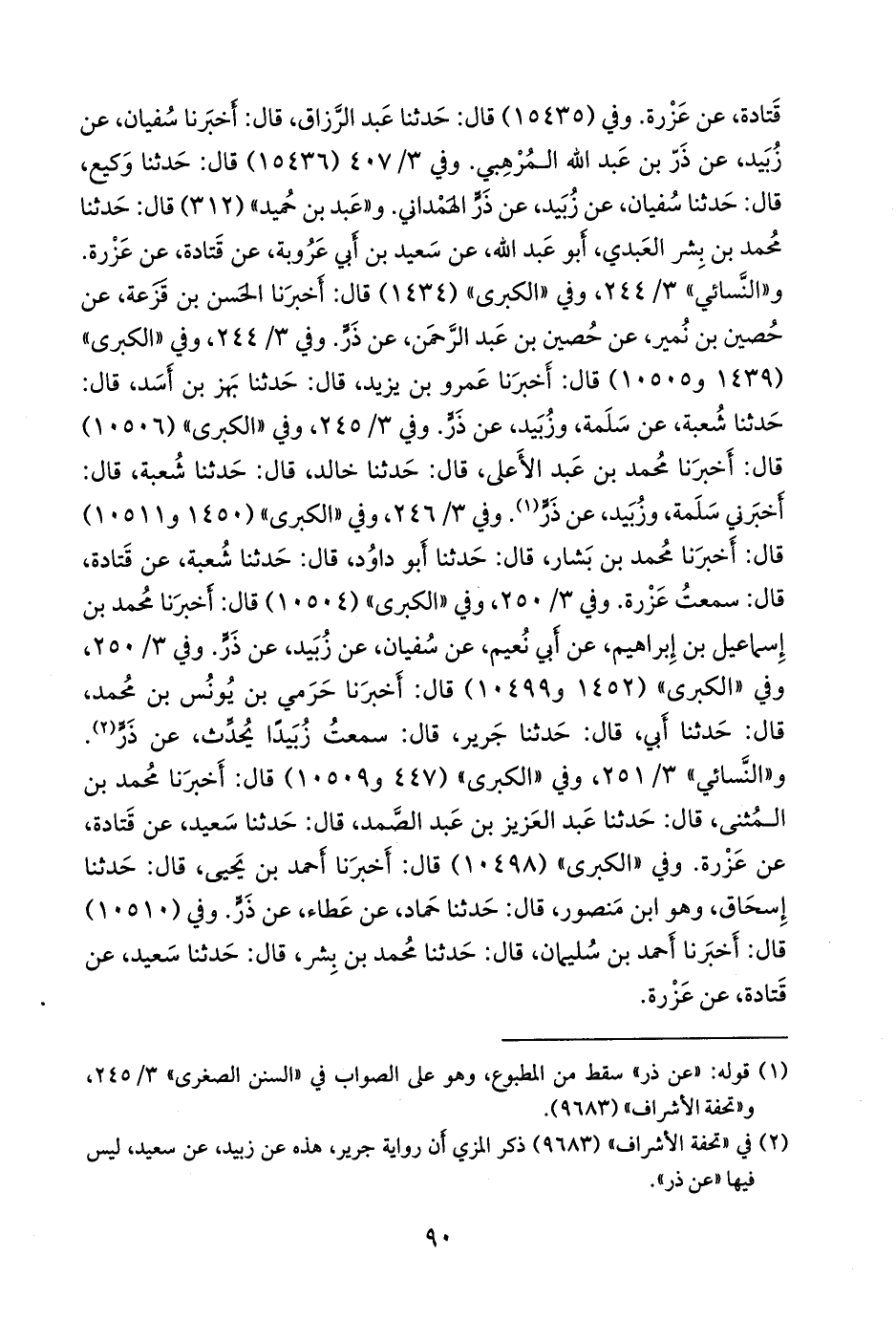 و «النَّسَائي» ٣/ ٢٥١, وفي «الكبرى» (٤٤٧ و ١٠٥٠٩) قال: أخبرنا محمد بن المثنى، قال: حدثنا عبد العزيز بن عبد الصمد، قال: حدثنا سعيد، عن قتادة، عن عَزرة. وفي «الكبرى» (١٠٤٩٨) قال: أخبرنا أحمد بن يحيى، قال: حدثنا إسحاق، وهو ابن منصور، قال: حدثنا حماد، عن عطاء، عن ذر. وفي (١٠٥١٠) قال: أخبرنا أحمد بن سليمان، قال: حدثنا محمد بن بشر، قال: حدثنا سعيد، عن قتادة، عن عَزرة.