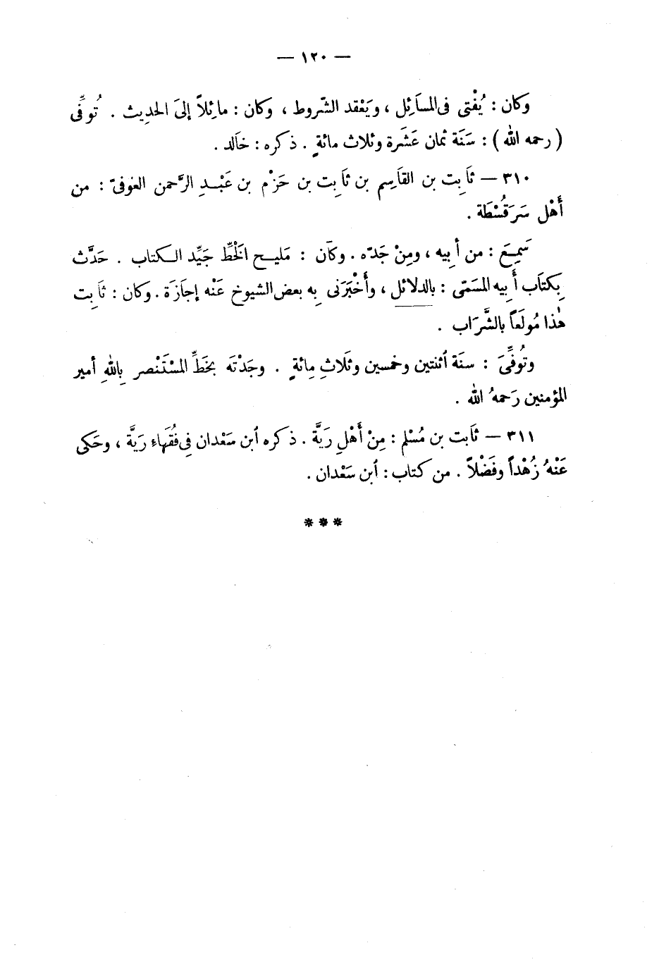 310 - ثَابِت بن القَاسِم بن ثَابِت بن حَزم بن عبد الرَّحمن العوفيّ: من أهل سرقُسْطَة.