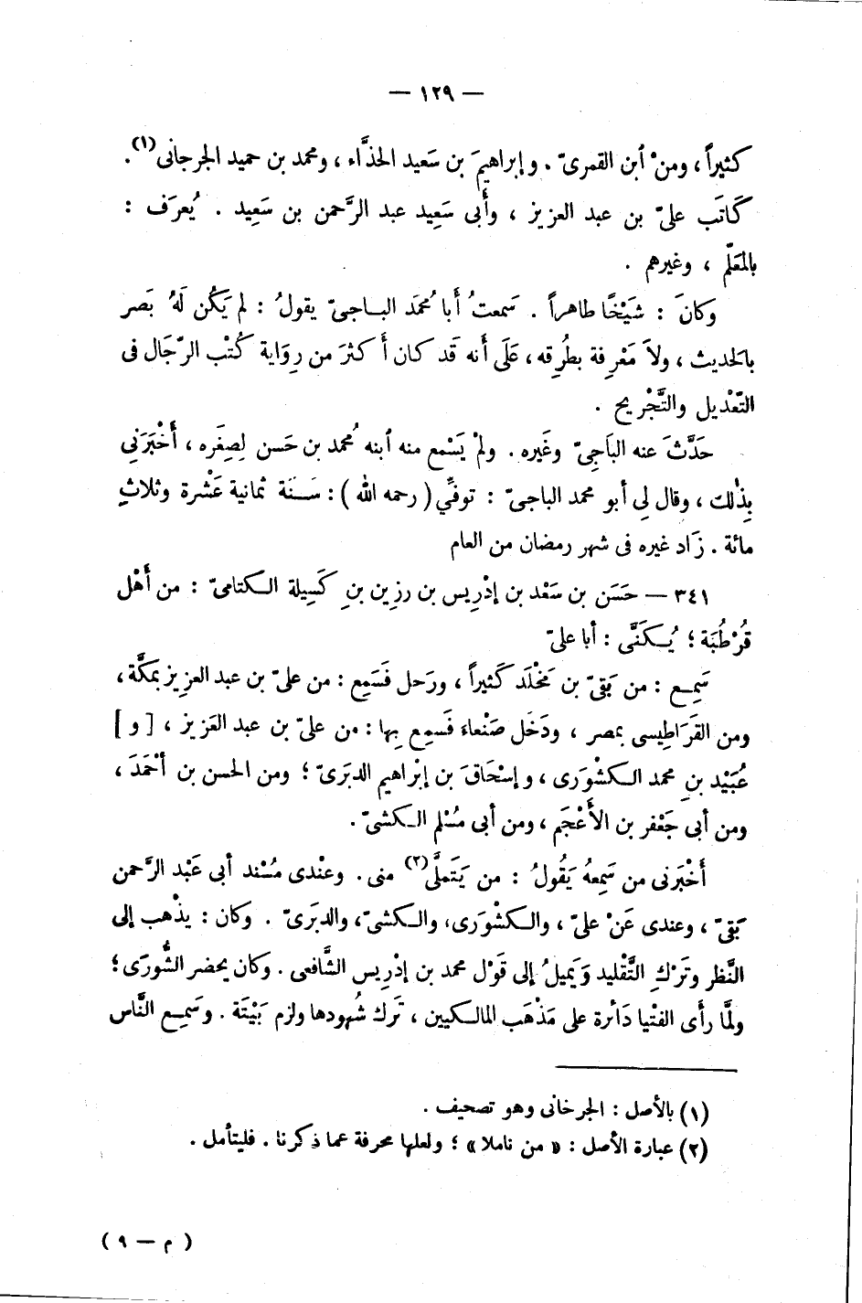 كثيراً، ومنْ آبن القمريّ، وإبراهيم بن سَعيد الحذَّاء، ومحمد بن حميد الجرجاني. كَاتَب عليّ بن عبد العزيز، وأبي سعيد عبد الرَّحمن بن سعيد. يُعرَف: بالمعَلّم، وغيرهم.