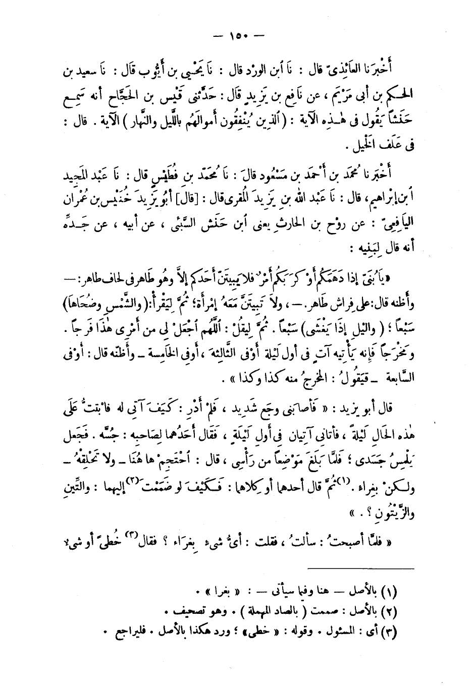 أخْبَرنَا محمد بن أحْمَد بن مَسْعُود قالَ: نَا مُحَمَّد بنِ فُطَيْسٍ قال: نَا عَبْد المَجِيد آبن إبراهيم، قال: نَا عَبْدالله بن يَزِيدَ المُقري قال: قال أبُو يَزيدَ خُنَيْس بن عُمْران اليَافِعِيّ: عن روْح بن الحارثِ يعني آبن حَنَش السَّبئ، عن أبيه، عن جَدِّه أنه قال لِبَنيه: