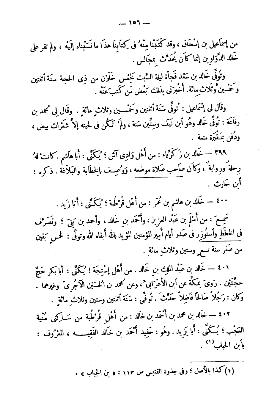 400 - خَالد بن هاشم بن عُمر: من أهْل قُرْطُبَة؛ يُكَنَّى: أبَا زَيد.
