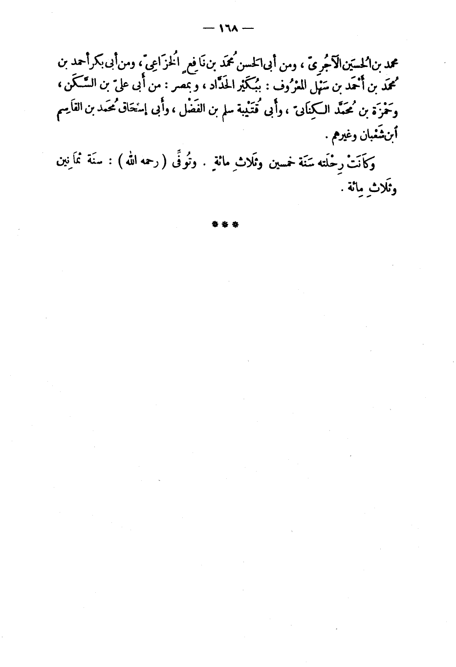 وكانتْ رِحْلَته سَنَة خمسين وثلاثِ مائةٍ. وتُوفِّي (رحمه الله) : سنَة ثمانين وثلاثِ مائة.