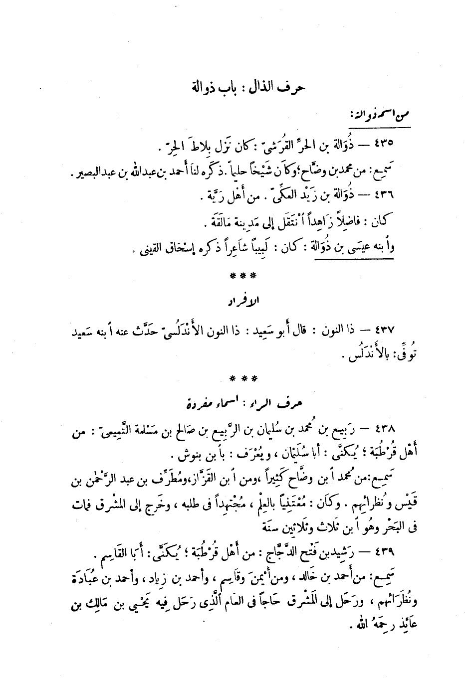 439 - رَشِيد بن فَتْح الدَّجَّاج: من أهْل قُرْطُبَة؛ يُكَنَّى: أبَا القَاسِم.