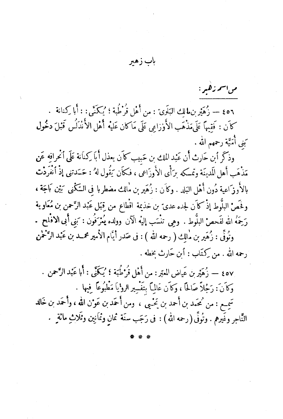 456 - زُهَيْر بن مالِك البَلَويّ: من أهْل قُرْطُبَة؛ يُكَنَّى: أبا كِنانة.