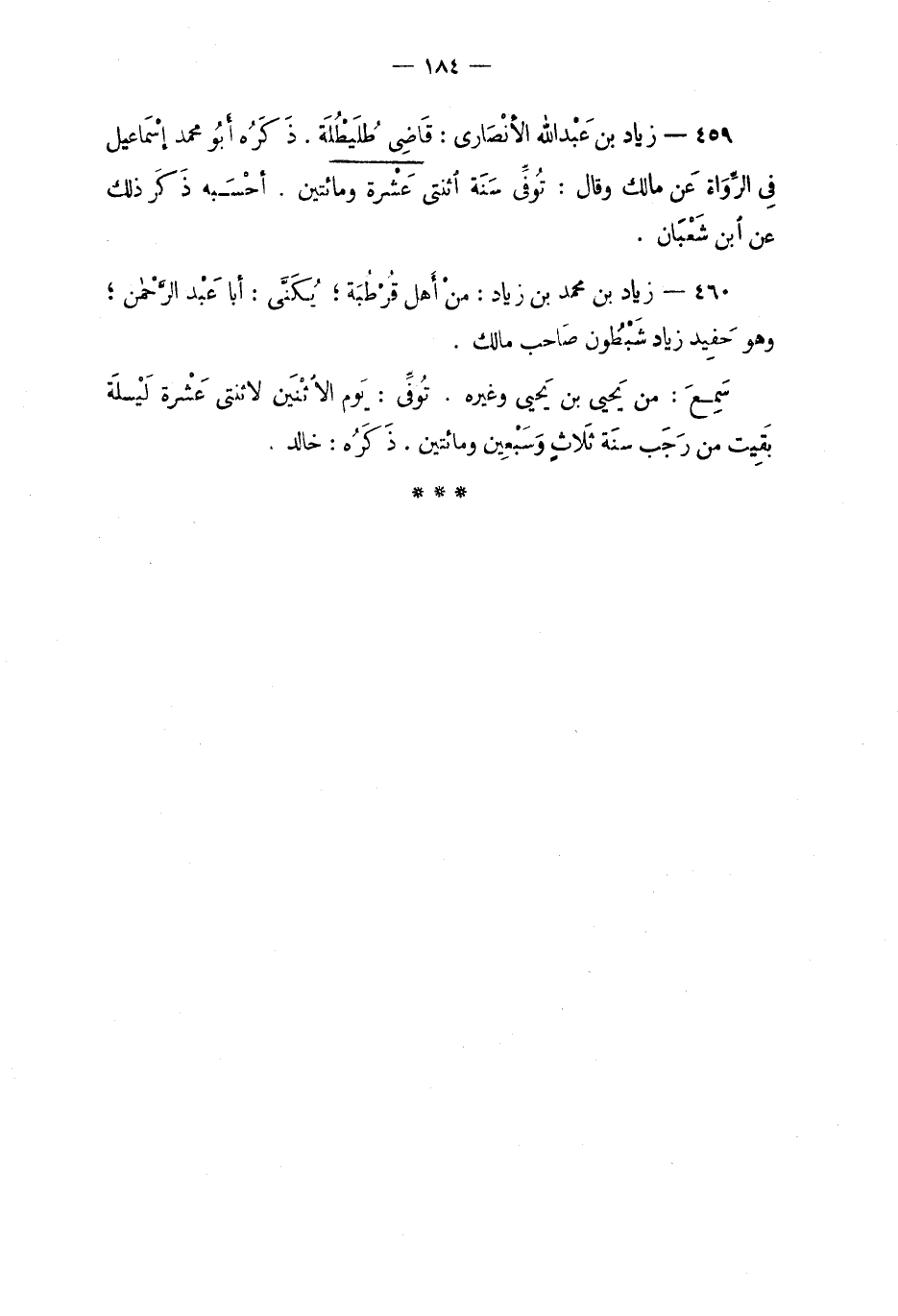 460 - زِيَاد بن مُحَمَّد بن زِيَاد: من أهْل قُرْطُبَة؛ يُكَنَّى: أبا عَبْد الرَّحمن؛ وهو حَفيد زِيَاد شَبْطُون صَاحب مالك.