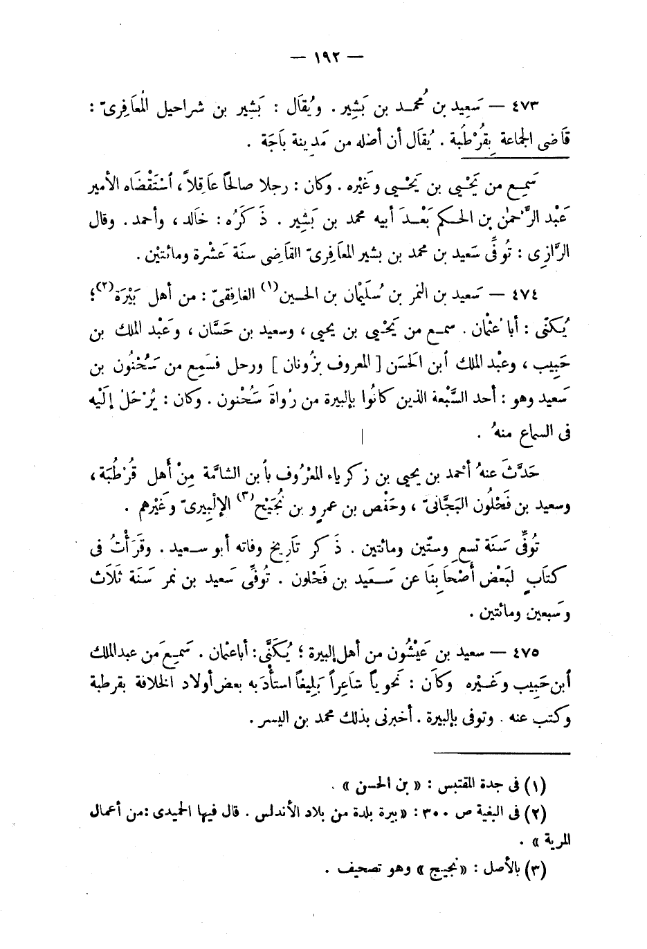 473 - سَعِيد بن مُحَمَّد بن بَشير. ويُقال: بَشير بن شراحيل المُعافريّ: قاضي الجماعة بِقُرْطُبَة. يُقال أن أصله من مَدينة بَاجَة.