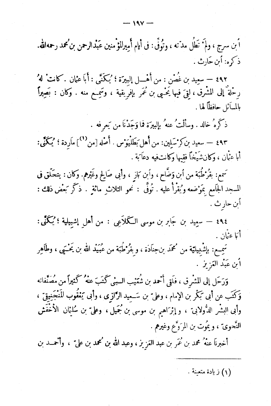493 - سَعِيد بن كرْسلين: من أهْل بَطَلْيَوس. أصله من مَارِدة؛ يُكَنَّى: أبا عُثمان، وكان شَيْخاً فقيهاً وكانت فيه دعَابَة.
