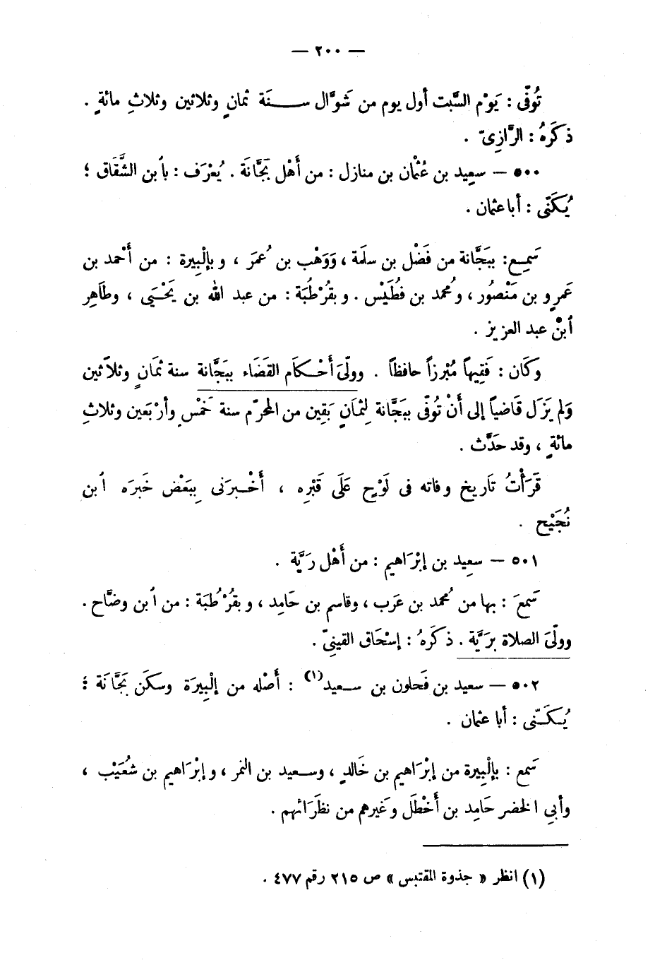 502 - سَعِيد بن فحلون بن سَعِيد: أصله من إلبيرة وسكن بجَّانَة؛ يُكَنَّى: أبا عثمان.
